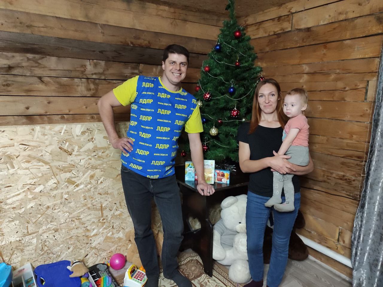 Координатор Мысков Роман Рудниченко и активист ЛДПР Павел Якунин поздравили с наступающим Новым годом детей участников специальной военной операции