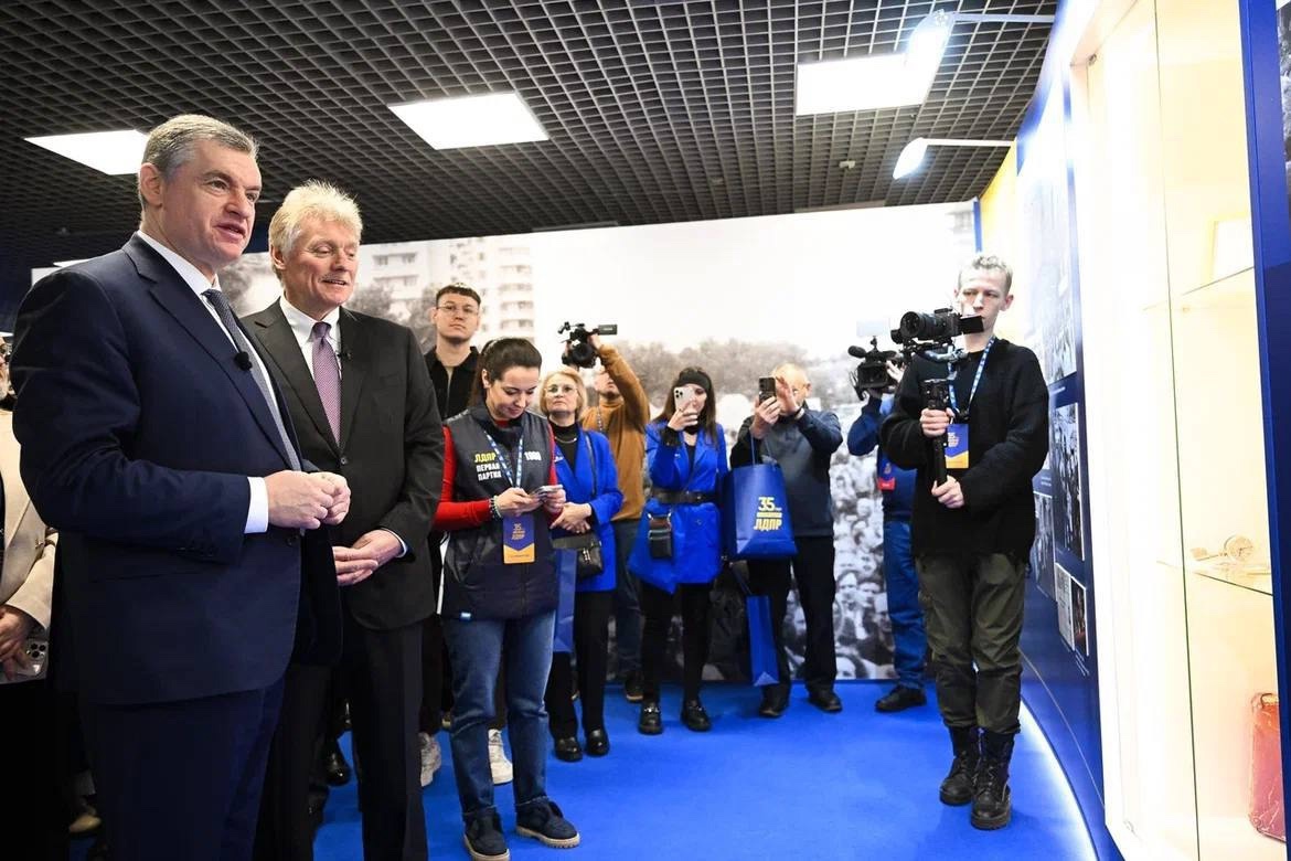 Пресс-секретарь Президента РФ Дмитрий Песков посетил выставку «ЛДПР: 35 лет с народом»