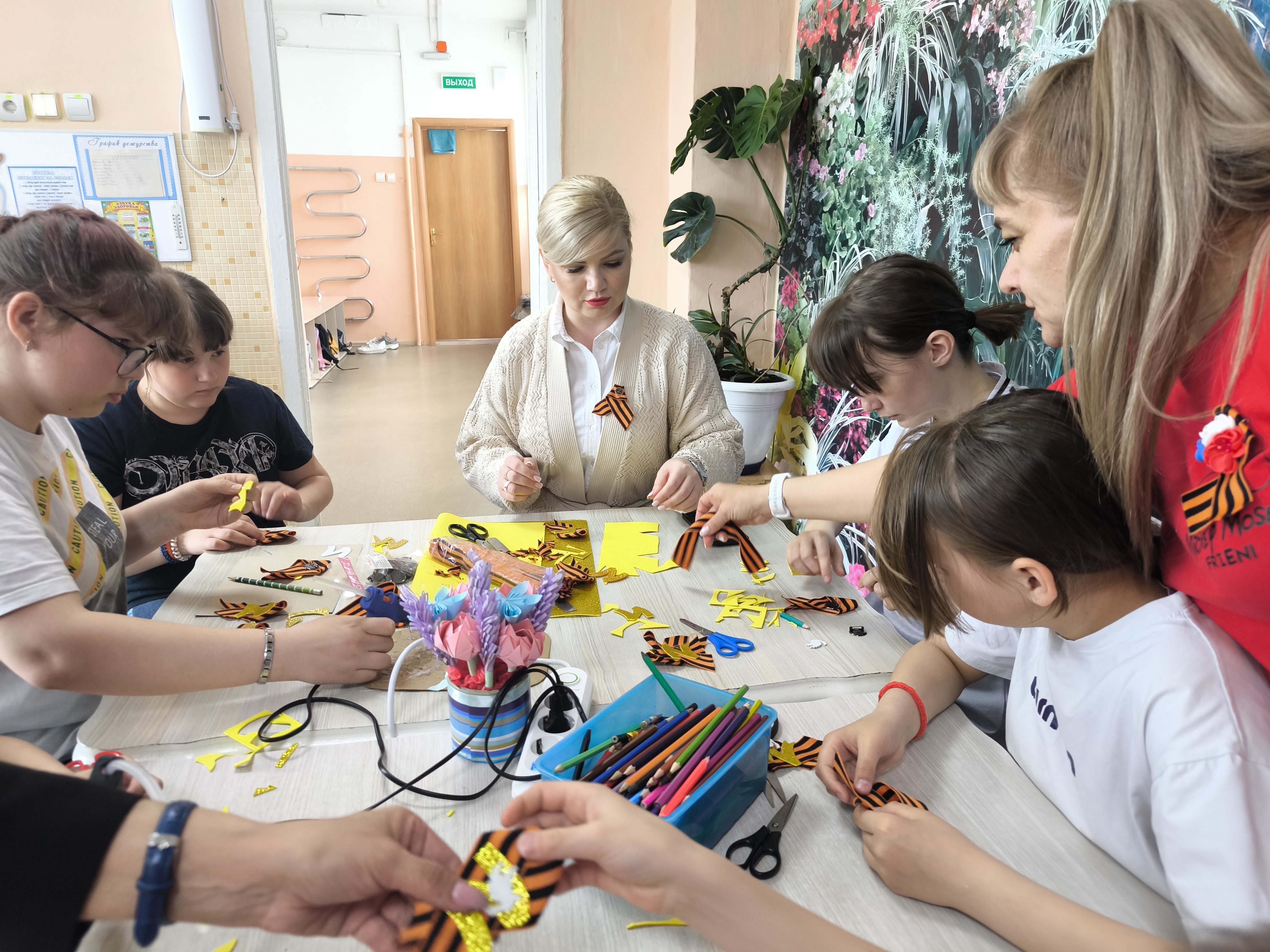 В честь знаменательной даты провели мастер-класс по изготовлению «Георгиевской ленты» в социально-реабилитационном центре «Алые паруса»